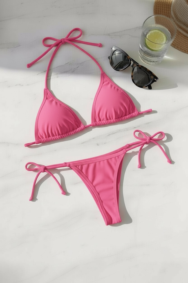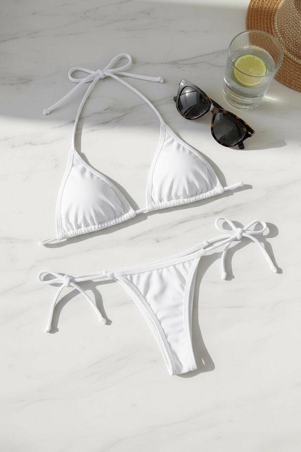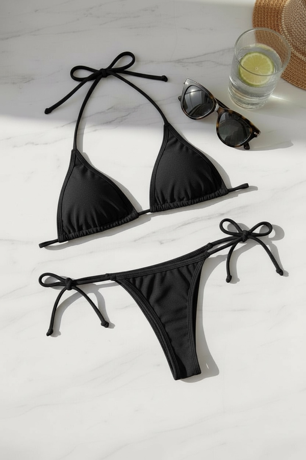 Bikini triángulo confeccionada en lycra premium con protección UV, pensada para quienes buscan un modelo clásico, cómodo y atemporal.